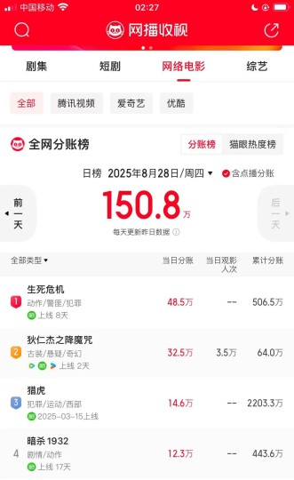 该片上线两天票房64万,被赵文卓主演的《生死危机》给压制了,名列网络票房第二。如此下去,恐怕复制不了《狄公灭鼠》的商业奇迹。