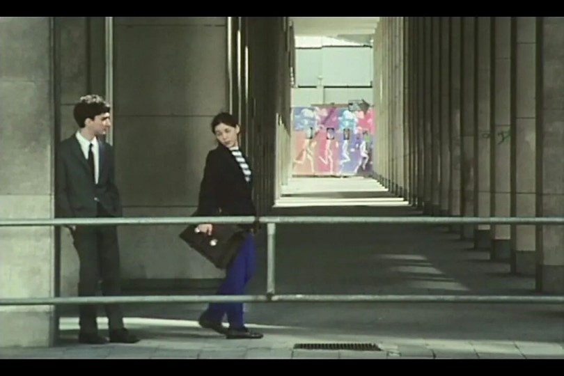 下一次反写(抑或说重构)来得很快,而写作仍在身体上进行。还记得米歇尔为自己伪造假条时摄影机的专注吗?随着家庭成员的名字被一个个念出,米歇尔的表情犹疑—躁动—闪光,转瞬即逝,通过扮演游戏的反复变化,生与死的时刻接连不断。此时我们已经无需再去看纸面上某个没有发声的文字,此后关于米歇尔的秘密不断经由敞开的身体转写,关于伪造的笔触则在裂缝里溢出。扮演学生:少男少女们在校门口的奔跑看上去就像某一次练习;扮演成人:揉搓假条与点燃香烟时微微停顿的手;扮演情人:电影院被窸窣的笑声围观的吻。