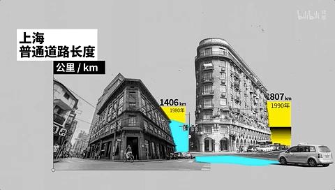 1990年以后,上海的交通工程和基础设施的建设全面发力,普通道路长度从1980年的2115km到2021年时已经达到122232km。