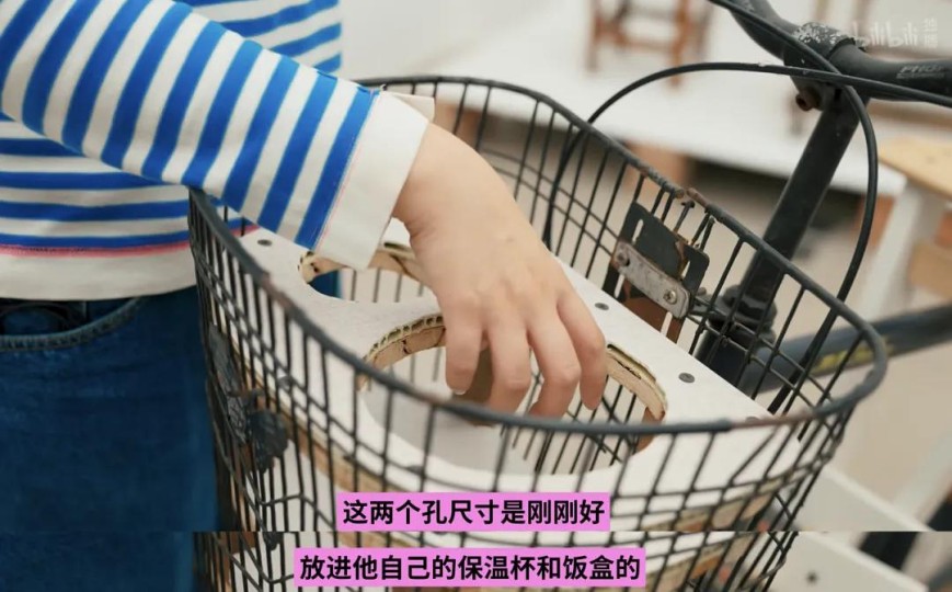 自行车筐里专门为保温杯和饭盒,设计定制了尺寸合适的卡槽,有效防止骑行途中泼洒。