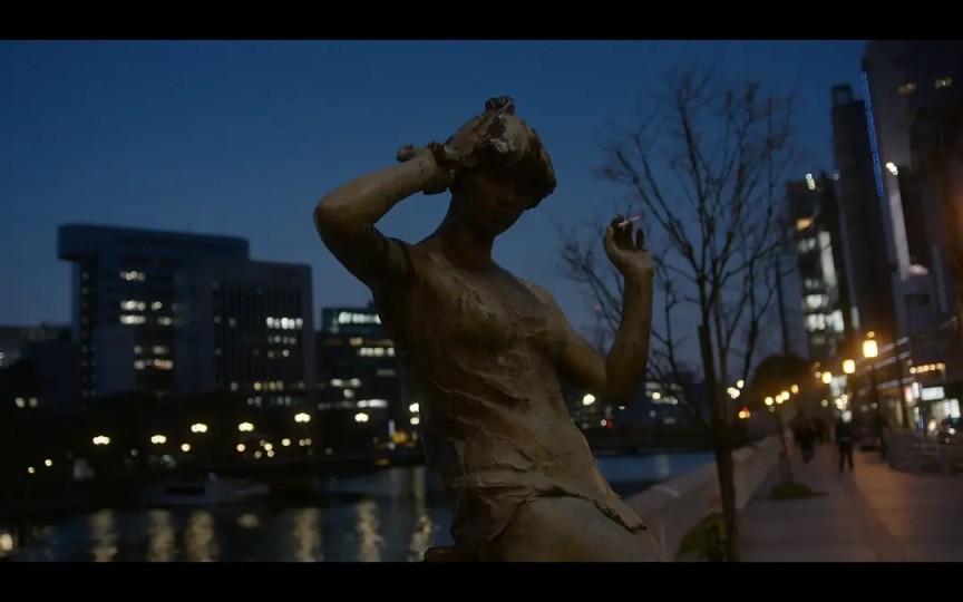 20251019福州天堂电影院观影之《福冈》 这是今年军少到电影院欣赏的第59部电影,同时也是在福州天堂电影院观赏的第312部电影,也是2016年以来到电影院观看的第895部电影。 本以为是部比较沉闷的文艺片,没想到妙趣横生,回味无穷。 三人行电影的两男一女竟然是用本名出演!两个中年老男人竟然很有CP感,配合的天衣无缝,文艺女青年的塔前一吻虽然突兀,却又合情合理。 最喜欢韩国大叔权海骁的表演,那得是多少岁月的沉淀才能说出那么又有深度又诙谐的金句? 本片和之前看过的张律导演的《豆满江》一样,依旧带有魔幻色彩,且剪辑很穿越,不时在韩国与日本,过去和现在切换,看文艺片根本不需要逻辑性,只需要看细节,那些看似无声的细节,早已在你心底泛起波澜。 通往青春记忆的号码二十八年都没变,电话铃声响起,那是对旧时光的呼唤。 谁的青春不迷茫,谁的青春不愤懑?当沧桑激昂的片尾曲《野菊花》响起,那是对青春的致敬,所有的情绪在这一刻得到了宣泄,得到了升华。 为什么三个韩国人会去福冈旅行?军少认为有三个原因:一是福冈是离韩国最近的日本城市。二是电影提到诗人尹东柱(《咏鹅》里也很明确提了)。尹东柱,诗人,出生在中国吉林,祖籍是朝鲜,后因参与反日爱国运动被日本警方逮捕,27岁死于福冈的监狱。三是福冈是座很文艺的城市,有福冈“埃菲尔铁塔”等打卡点。 《福冈》精彩台词: 你一点也没变,还是活在自己的错觉里。 顺尹走了,一个在福冈开居酒屋,一个在学校附近开二手书店。 想听大叔说个爱情故事吗? 爱情和大叔不太搭吧?黄片还差不多。 大叔很有情调啊! 我和他能有什么情调?停电了 像枯木似的,在与不在,都感受不到他的存在。 一周分两半,我一半,他一半,我还能接受。 我作为前辈,我4天,他3天。 多出来一天,就石头剪刀布。 居然是和你一起看这么美的风景,真是无语。