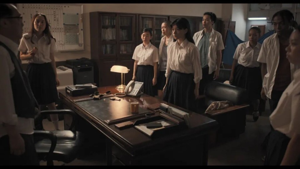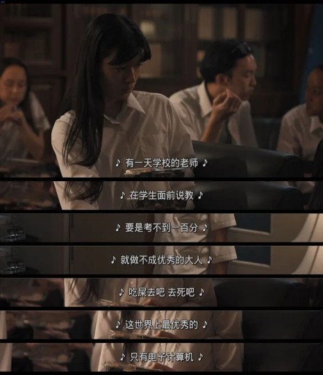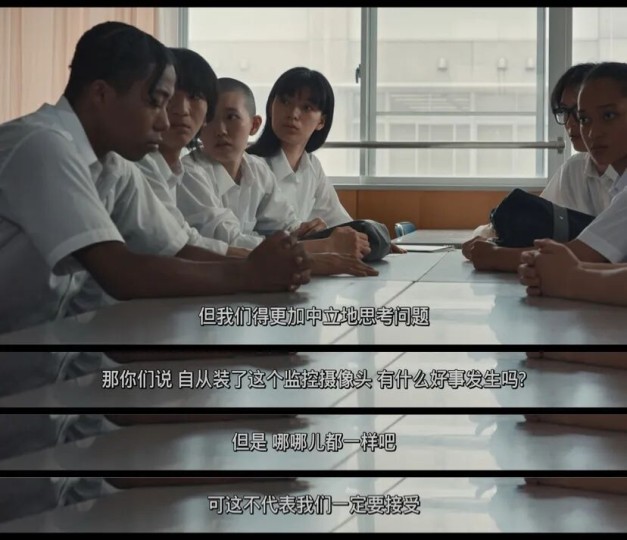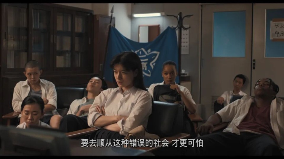 文美和同学们“占领”校长室、逼迫校长撤销监控评分系统,以牙还牙,反击了校长所代表的“高楼”对她们的空间的无限侵占。而当她们的抗议成果眼见要被狡猾的校长破坏时,悠太以自己的方式,并不激情地站上去,消解了在场的两派同学因对立的政见而产生的紧张斗争氛围。