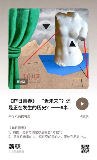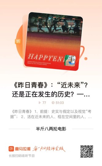 欢迎扫码收听播客节目,请注意:本期播客内容与本文不同,播客只谈《再见青春》,并侧重史实。其它平台播客更新链接请见文末。本文首发于公众号“半斤八两抡电影”。