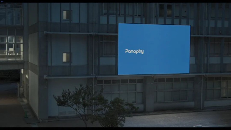 被投影了政治资讯的云,也是“庞大高楼”的视觉符号之一,在影片中数次出现。作为“近未来”的视觉细节,它们凌驾在每个人的头顶,飘在世人生活的空间上空。云上显出政治新闻,或是大财团的商品打折信息,看似与人们毫无交集,其实渗透侵入了每个人的生活之中。校长以”恐怖袭击“为名,在校园里安装无死角监控,学生的违纪行为会被立刻识别,判定后当即扣分,所有的隐私行为被监控抓取并显示在巨大的LED屏幕上,近乎公开处刑。